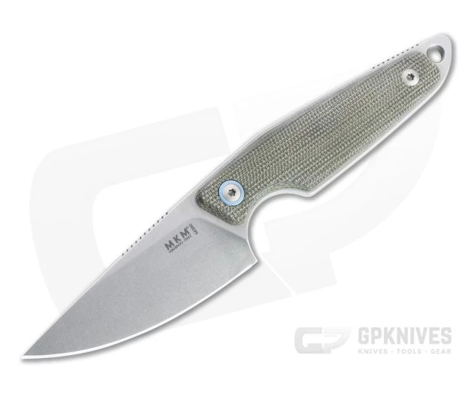 Designed by prolific Danish custom knife maker Jesper Voxnaes, the MKM Makro is a premium daily carry fixed blade built with premium materials and dress carry Italian style. A larger, more capable version of the Mikro, the Makro is available in two blade styles and multiple handle materials there is sure to be a Makro for everyone. The Makro 1 comes with a stonewashed M390 drop point blade. This version comes with green canvas Micarta handle scales.