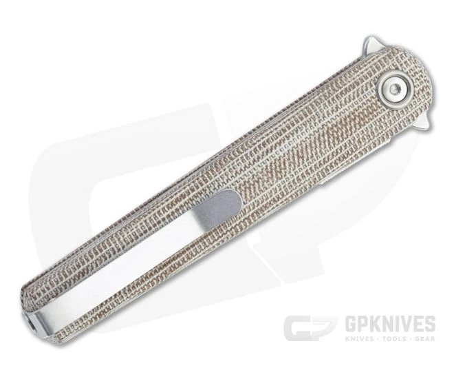 Based on his custom MS3 flipper, Michael Zieba has teamed up with Maniago Knife Makers (MKM) to offer a high quality production version in the Flame. Retaining the compact, sleek and minimalist design, the Flame provides a more accessible version with premium design and performance. The Flame Light features a nested liner lock construction and reversible deep carry clip. This version comes with natural canvas Micarta scales and a stonewashed M390 dagger (single edge) blade.