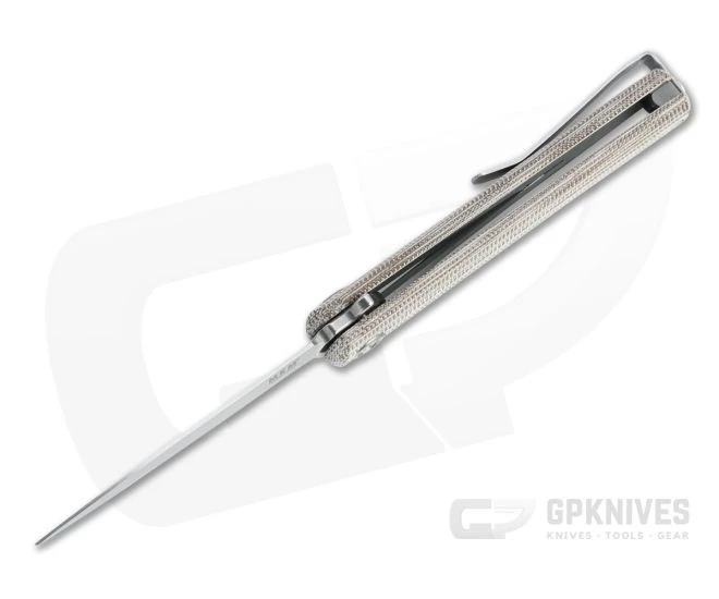 Handle: Nested, skeletonized stainless steel liners support the contoured canvas Micarta scales for a solid and comfortable grip with easy slim carry. The open construction reduces weight and makes for easy maintenance while the inset liner lock provides smooth operation and solid lockup for safe use.