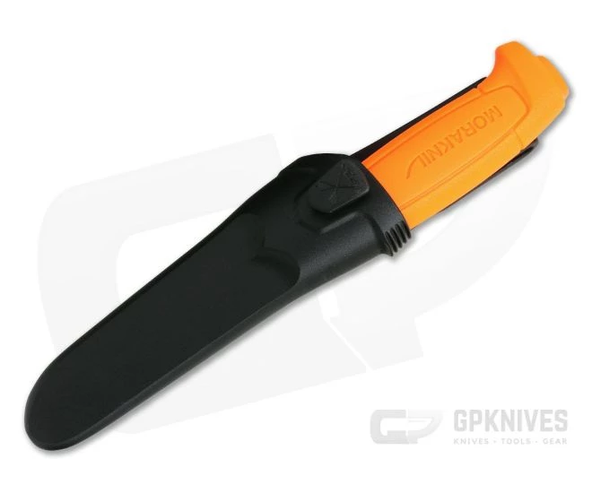 The Mora 511 Basic is a cornerstone knife in the Morakniv lineup. This Basic fixed blade knife comes with a high visibility orange polymer handle and an extremely sharp, scandi-ground carbon steel blade. The easy to clean ergonomic handle has an integrated guard for safety and carries via a black molded polymer sheath. Great for your pack, tackle box or tool shed.