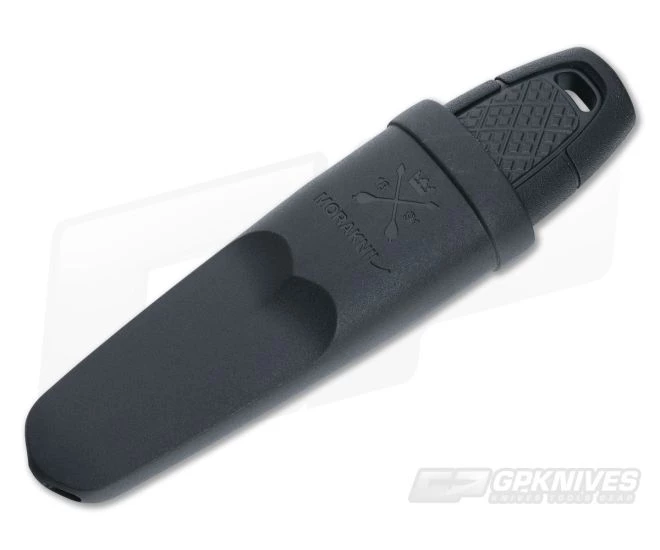 The Sheath:Â Like most things Mora, the sheath has been kept extremely simple on the Eldris. It is made of the same rugged polymer as the handle and has a drain hole in the bottom to keep water away from the blade. This sheath has no belt loop and is meant for in pocket carry.