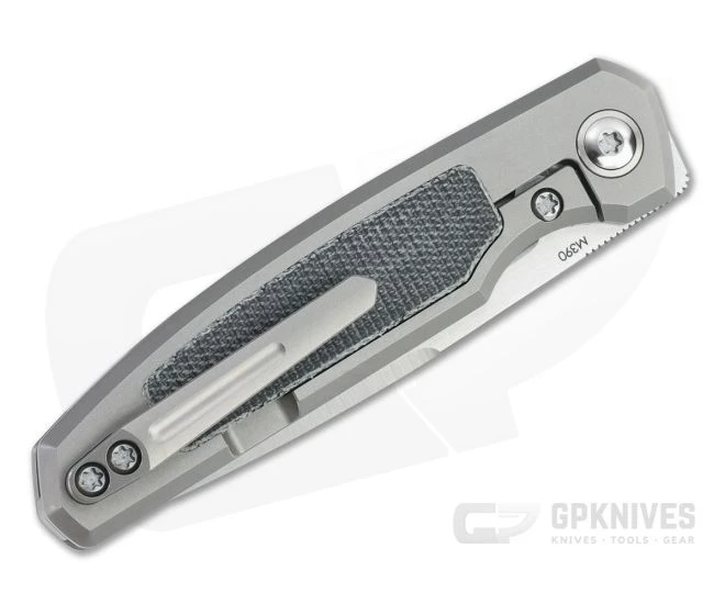 Handle:Â Modern tactical construction blends with a traditional design aesthetic for dress carry style with thick, matte gray titanium slabs and black canvas Micarta inlays. The slabs are solid with comfortably chamfered edges while the Micarta inlays create a bolstered look and offer traction in hand. Equipped with a hardened steel lock face the integral frame lock is smooth in operation with rock solid lockup for safe use. An inline pin allows for lanyard attachment.