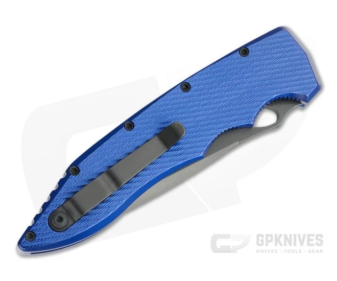 The Piranha Knives Predator is ready to hunt down the prey of daily cutting tasks with a rugged, S30V spear point blade, 3D milled aluminum handle and rock solid button lock automatic mechanism. The Predator is all business. This Tactical version comes with a black PVD coated blade and blue handle.