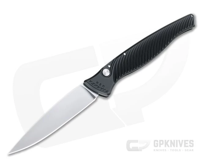 Handle:Â This slender, gentleman’s daily carry auto has a hard anodized, aircraft grade aluminum handle with helix milling and chamfered edges for a secure and comfortable grip. Rock solid and reliable, the button lock mechanism delivers safe, secure operation. Construction is completed with stainless Torx hardware.