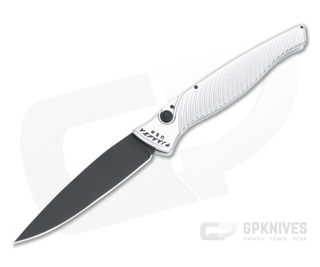 A slim, ultralight, gentleman’s carry EDC automatic, the Piranha DNA delivers 3.25 inches of cutting edge in a sub-2 ounce package that is less than an inch wide closed for exceptionally easy carry. Aircraft grade aluminum houses the S30V blade and button lock automatic mechanism for fast deployment and secure lockup with helix milling on the sides for a secure, comfortable grip. This Tactical version comes with a black PVD coated blade and silver aluminum handle.