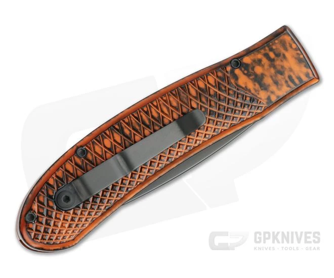 Handle:Â A large, sweeping handle of hard anodized aircraft grade aluminum offers a full grip in a neutral design for added versatility. Chamfered edges taper to snake scale pattern milling that offers plenty of traction no matter the grip that pair with the thumb scoop and palm swell for a solid grip. A smooth section near the pivot gives a bolstered look while the button lock delivers rock solid and reliable lockup for safe use.