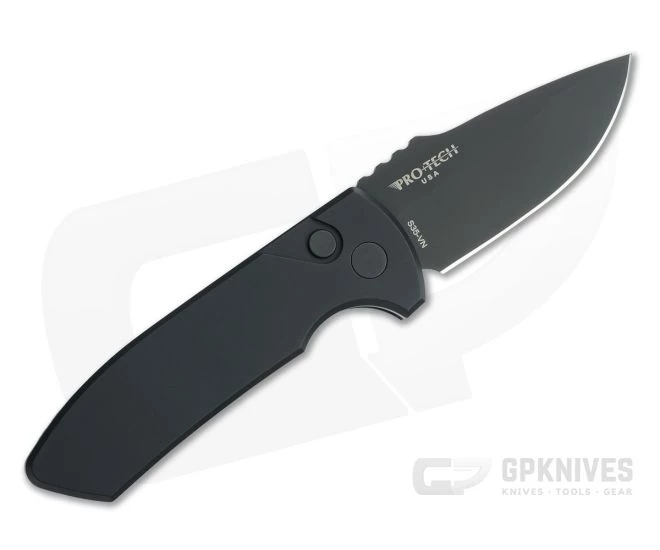 The Protech Knives SBR (Short Bladed Rockeye) is a utilitarian, compact, every-day-carry version of the Les George iconic Rockeye model, retaining the classic design in a smaller package. The SBR has the same American innovations as the Rockeye, featuring modern materials, high-tech manufacturing, advanced coil spring mechanism, and quality American production. This left-handed version has a black DLC coated S35VN blade, smooth black hard anodized aluminum handles and matching hardware.