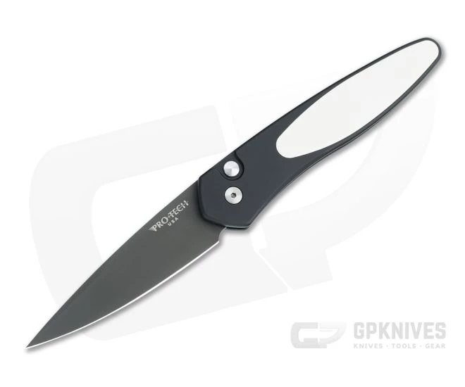 The Newport Auto from Protech Knives is a sleek, sophisticated design with clean lines and modern style. Solid utility with excellent fit and finish make the Newport a pleasure to use and carry. This “Tuxedo” version comes in with an Ivory White Micarta inlay, black hard anodized aluminum handle and black DLC coated CPM-S35VN blade.