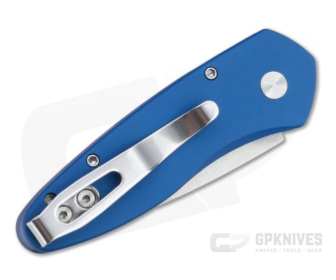 The Protech Sprint is a stylish, high performance California legal automatic that carries like a feather and performs like a razor. The Sprint features modern materials, high-tech manufacturing, an advanced coil spring mechanism, and American production quality, the foundation of Protech’s designs. This version has a stonewashed, plain edge, S35VN blade and hard anodized Blue aluminum handles.