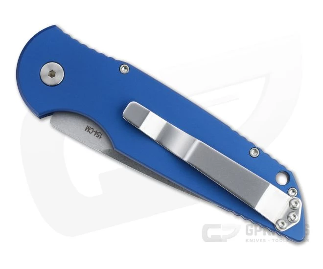 Protech Tactical Response 3 Left Hand Automatic Stonewashed 154CM Grooved Blue Folder TR-3-L-1-BLUE