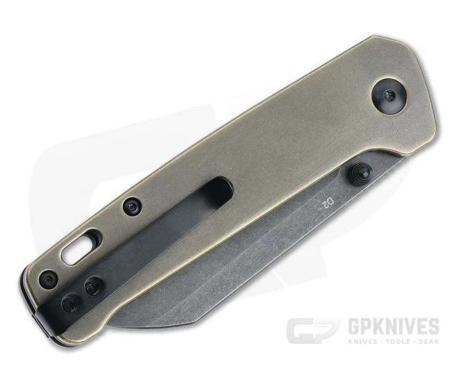 Handle: Black skeletonized stainless steel liners support hefty tumbled brass handle scales for a rugged style and great in hand feel. Chamfered edges offer a comfortable in hand feel with a subtle guard for safety. The neutral handle design is comfortable in multiple grips for added versatility while a jimped liner lock offers ease of operation and secure lockup for safe use. A generous hole is provided for lanyard attachment.