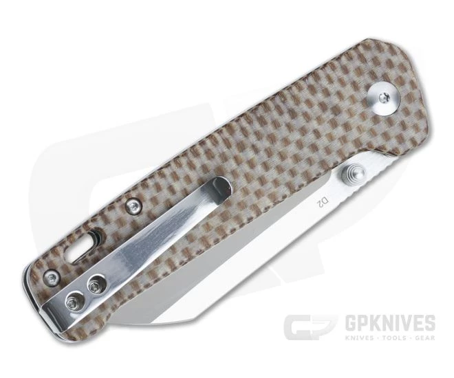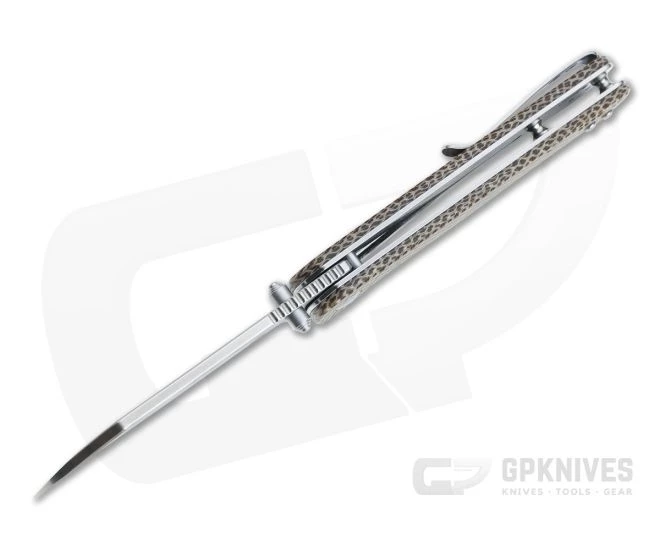 Blade:Â Made from D2 tool steel the Sheepfoot blade rides smooth on the robust copper washer pivot with dual thumb studs delivering ambidextrous one-hand operation. The high saber grind and relatively thin stock deliver excellent slicing performance with solid durability and a fine tip for piercing and detail work. A two-tone satin finish and chamfered edges on the spine give the blade a classy look while the jimping on the spine provides added traction and security.