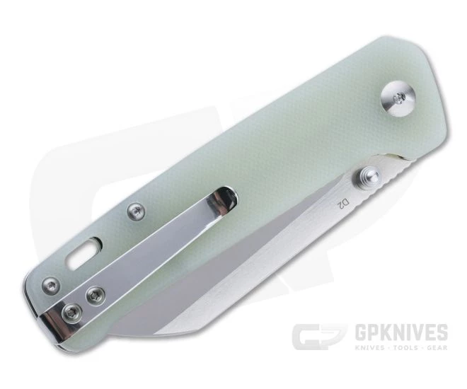 Built rugged for hard use environments, the QSP Penguin is a rock solid everyday carry liner lock folder. Built on a tried and true liner lock construction, the Penguin pairs a robust D2 Sheepsfoot blade with flat scales and a secure, neutral handle design for versatility and ease of carry. This version comes with a two-tone satin finished D2 tool steel blade and translucent “Jade” green G10 handle scales.
