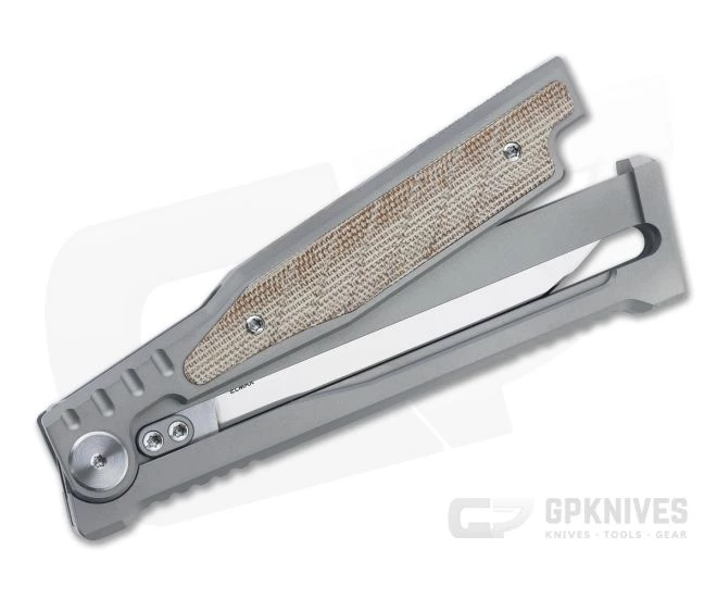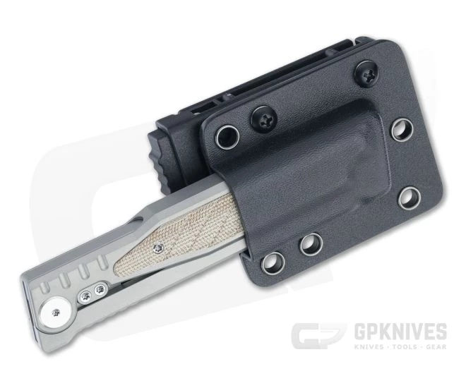 Handle:Â With integral billet titanium construction on both yoke and frame and a large titanium pivot/stop pin the handle delivers exceptional strength. The simple design is easy to clean and maintain. While the knife is non-locking, the blade holds secure in position while gripping the handle. Strategic jimping and milled canvas Micarta inlays ensure positive retention during use.
