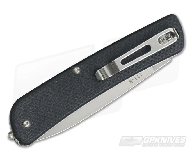 Blade:Â The simple drop point profile is finished in an elegant mirror polish and opens via a classic nail nick. The full flat grind delivers a razor sharp edge giving striking the perfect balance between durability and slicing performance. Tapering to a fine tip the L11 is capable of fine detail cutting.