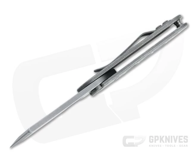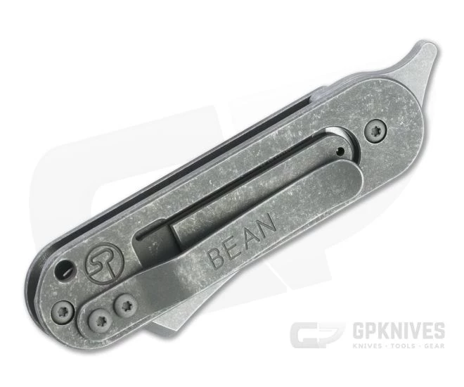 Designed, built, and custom finished maker Serge Panchenko, the mid-tech Bean flipper is a compact detent slip joint offering snappy deployment and sleek carry in a non-locking platform. The mid-tech version have high quality blades produced by Millit Knives. The pill shaped design of the handle offers a clean look and secure three-finger grip. This flipper version comes with an acid washed Nitro-V cleaver blade, matching titanium handles and clip, and a hole milled antique copper inlay.