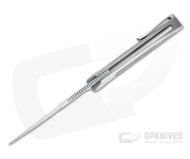 A smaller version of designer Brian Nadeau’s popular Tempest, the Mini Tempest offers the same clean lines and flawless build quality in a more compact package ideal for daily carry. This version comes with a hand rubbed satin finished M390 drop point blade, glass bead finished titanium and Marvel Blue FatCarbon inlays.