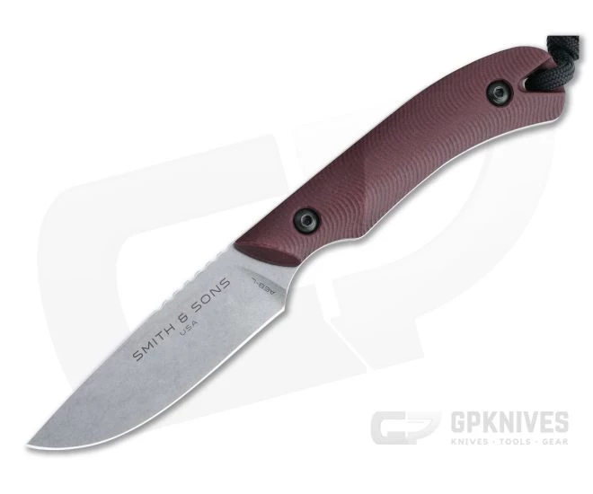 The Axiom from Smith & Sons is an everyday carry fixed blade designed for versatile utility. Compact and easy to carry the Axiom makes a good backup or reliable replacement for your folding knife. Streamlined and refined, the Axiom V2 comes with a smooth tumbled finish on the AEB-L blade with textured and contoured handle scales without liners. This version has burgundy Richlite scales.