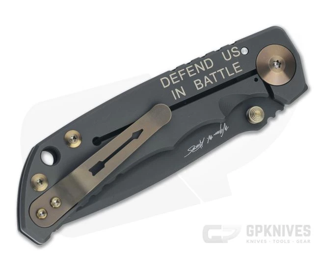 Winner of the “Overall American Made Knife of the Year” for 2016, the Spartan Harsey Folder is now available in a special edition “Saint Michael the Archangel” graphic. This collaborative effort features Bill Harsey’s signature styling combined with premium materials and Spartan’s precision fit and finish. Comfortable in-hand and ready for hard use this “Black and Gold” version features a black PVD coated S45VN blade and titanium handles with deep, elaborate Gold Laser anodized engravings: Saint Michael the Archangel depicted on the front and “Defend Us In Battle” on the back with matching black and bronze details.