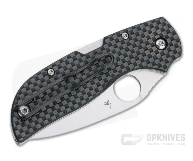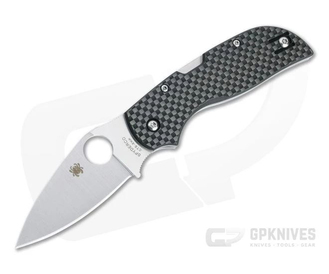 Handle: Skeletonized stainless steel liners support handsome, textured carbon fiber scales for stylish appeal and a tactile feel in hand. A fully accessible Spyderco Round hole and mid-back lock make the Chaparral fully ambidextrous. The chamfered* lock bar is comfortable to operate with smooth operation and solid lockup. *Part of Spyderco’s CQI or Constant Quality Improvement program.