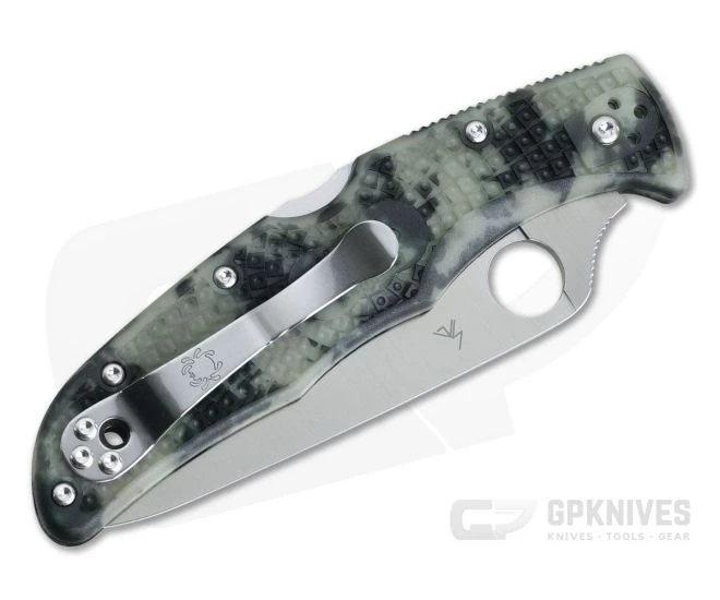 Spyderco’s Endura, big sister to the Delica, has been a cornerstone of their everyday carry product line since its introduction in 1990. The 4th Generation of the Endura lightweight was upgraded with a 13Â mm RoundHole, spine jimping, reinforced blade tip, skeletonized liners, Bi-Directional Textured FRN scales and a four-position screw on clip. Adding style to the Endura line is the unique Zome handle series. This Limited Run distributor exclusive comes with a fully flat ground, satin finished, plain edge VG10 blade and Glow-In-the-Dark Desert Zome FRN handles. Available while supplies last.