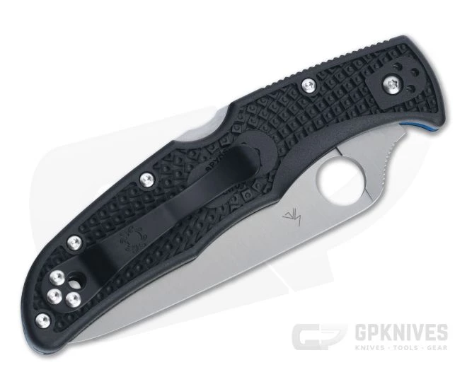 Blade: Practical and effective, the modified drop point blade comes in a high performance full flat grind with a versatile, partially serrated cutting edge. At just under 3.5 inches of cutting edge, this stout 3 mm blade is up to handling some serious cutting tasks. SpyderEdge serrations increase the cutting edge surface by up to 24% and make short work of tough, fibrous materials. A rugged bronze washer pivot provides smooth operation via the ambidextrous RoundHole which delivers easy one hand operation. A jimped thumb ramp offers added traction for control in heavy and fine work.