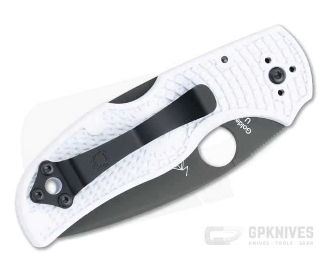 A flagship US production model since its inception, the Spyderco Native 5 is a compact, lightweight EDC folder with rugged versatility. GPKnives now offers our limited edition Exclusive Native 5 Lightweight in CPM Rex 45 high speed tool steel with black DLC coating and pure White FRN handles with blade matching black hardware and clip.