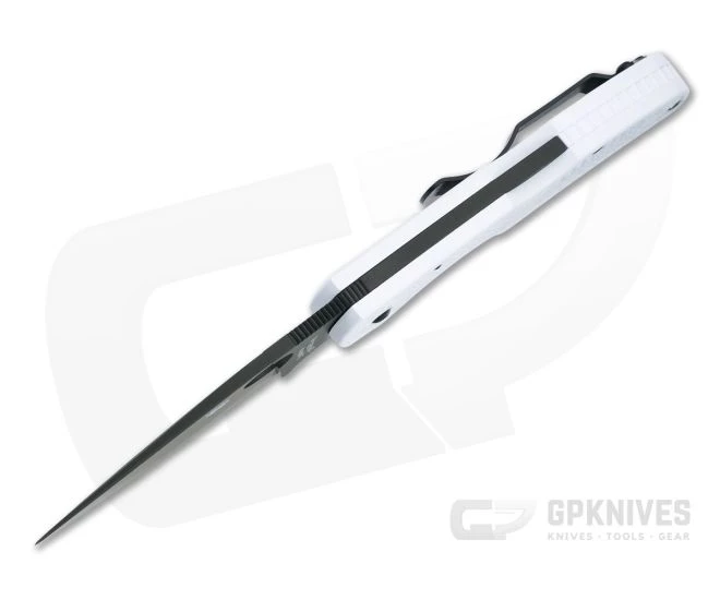 Handle:Â Lightweight, durable and weatherproof fiberglass reinforced nylon handles makes for easy carry and worry free use. White FRN has a clean look and is ready for personal dye customization. Molded Bi-directional texture ensures a safe grip with smooth edges for comfort. A stout mid-back lock offers flawless ambidextrous operation and rock solid lock up. A through hole clip allows for lanyard attachment.