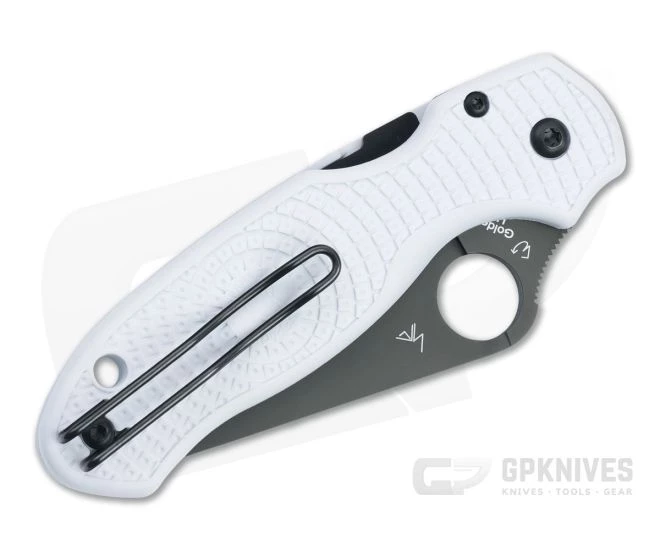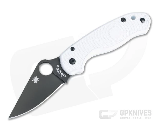 Eric and Sal Glesser designed the Spyderco Para 3 to meet demand for a more compact, sub-3” blade version of the popular USA-made ParaMilitary 2. A great size for EDC in the field or office, this compression lock folder is small but mighty, able to handle your daily cutting tasks with ease. The Lightweight version comes with contoured, high traction Bi-Directional textured FRN handles and a deep carry wire pocket clip. Our GPKNIVES Exclusive comes with a high performance, Black DLC coated CPM REX 45 blade, matching black hardware and clip and easily customizable White FRN handle.
