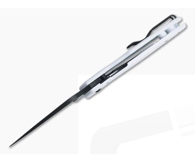 Handle: Contoured, injection-molded white FRN handle scales house the blade and inset stainless liner that forms the Compression Lock mechanism. Fiberglass-Reinforced Nylon (FRN) reduces the weight by nearly 30 percent while retaining solid durability and weather resistance. The FRN is molded with contours for comfort, and Bi-Directional texturing for optimal traction even in the most adverse conditions.