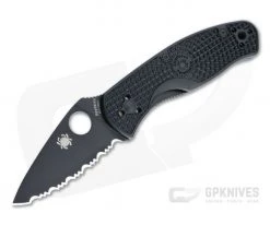 A mid-size model in the Spyderco Value line of folders, the Persistence is a budget friendly ‘little big knife’ with a statute-friendly sub-3 inch blade. The lightweight FRN version increases traction with molded bidirectional texturing while reducing cost and cutting weight by nearly 10% over the G10 version. The lightweight Persistence retains the same functional, ergonomic design and reliable liner lock construction. This version comes with black FRN scales and a black oxide coated fully serrated SpyderEdge blade.