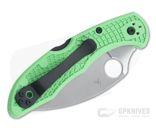 Based on the military tested and issued Pacific Salt 2, the Salt 2 is a smaller version built on the ergonomic Gen 4 Delica handles platform with Bi-Directional textured FRN and 4-position pocket clip. The Salt 2, continues Spyderco’s program of Constant Quality Improvement or CQI, offering an even lighter weight and corrosion resistant linerless construction and Titanium Carbo-Nitride (TiCN) coated hardware and back lock bar. The newest iteration of the Salt 2 comes with a full flat grind, LC200N stainless steel Wharncliffe blade and Key Lime Green FRN handles. This version comes with a plain cutting edge.