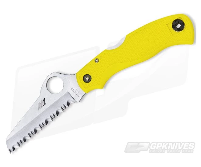 The Spyderco C118SYL Saver Salt Lightweight shares the same great design elements as the larger Atlantic Salt but offers them in a more compact and easy to carry package. The Saver Salt is a perfect choice for every day carry and use in environments where corrosion is an issue because thank to the rust-proof H1 blade, linerless FRN handles and coated titanium pocket clip it is all but impervious to corrosion. A full SpyderEdge serrated blade delivers up to 24% more cutting edge and provides powerful cutting performance when you need it most.