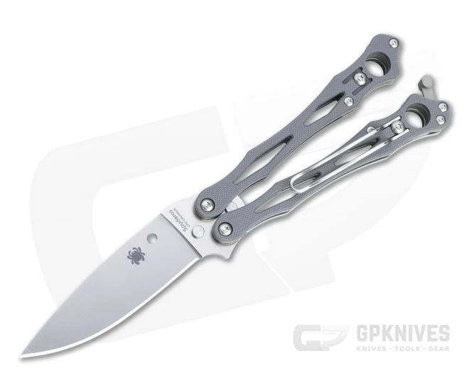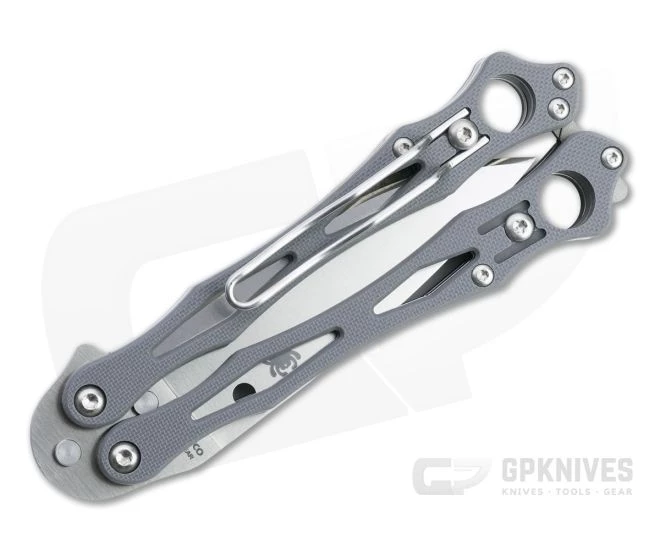 The Spyderco SmallFly put a new spin on the classic balisong or Filipino butterfly knife. Now it is back and better than ever in the SmallFly 2. Handle construction is similar with skeletonized stainless liners and G10 handle scales in a tradition-bucking Spyderco design along with a more utilitarian drop point blade. This limited distributor exclusive comes with a satin finished, CPM CRU-WEAR blade and gray G10 handle scales.