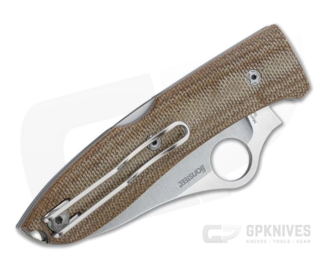 Handle: Full titanium liners house the blade along with the crowned back spacer and lock bar. Reliable and timeless the mid-back lock delivers secure lockup with smooth, one hand operation. Comfortably contoured Brown Canvas Micarta scales offer a warm in hand feel and excellent traction and are attached via custom Torx hardware to the liners. A hole at the pommel is provided for lanyard attachment.
