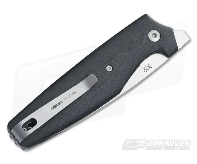 The Handle:Â The handles are ergonomic and contoured to provide comfort and security even during long use. This version has elegant Carbon Fiber scales attached to nested stainless steel liners. The liners also contain the Action Stopper mechanism, a set of detent balls that deliver secure, non-locking operation that is similar to a slip joint. A partial titanium back spacer provides a solid mount for the reversible, tip-up, stainless steel deep carry clip. The slim and smooth design nearly disappears in the pocket.