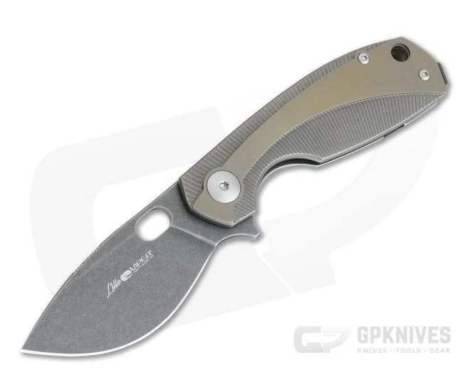 Designed by prolific Danish custom knife maker Jesper Voxnaes the Viper Lille is a classy, modern, compact every day carry gentleman’s knife that offers ‘big knife’ performance in a small package. The Lille exhibits top-notch fit and finish from Italian manufacturer Viper Tecnocut. The blade is a big belly drop point with serious slicing capacity especially with the flat ground M390 blade. This version comes with a black stonewashed finished blade, matching titanium handles and a Bronze anodized overlay.