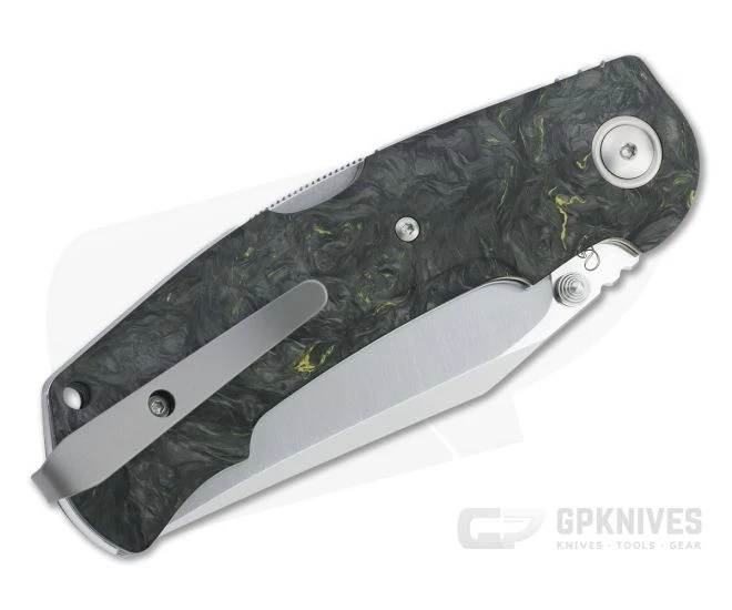 Handle:Â A modern design with classic lines, the handle offers a comfortable four finger grip for secure use. A subtle index guard and pommel hook provide added control and safety. Stainless steel liners support the full length carbon fiber scales, housing the blade and lock mechanism. The advanced lock back system retains the strength and function of a traditional back lock while using two wire springs for easier operation. Dark Matter Yellow Fat Carbon offers the performance of classic carbon fiber with added visual appeal.