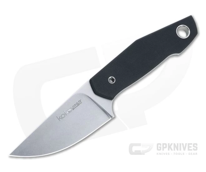 Designed by Danish custom knife maker Jesper Voxnaes, the Viper Koi is a streamlined yet capable fixed blade hunting knife. The practical Scandinavian design is ideal for extensive use while the modern look makes it a solid choice for a daily carry fixed blade. This version comes with a stonewashed N690 blade and black G10 handle scales.