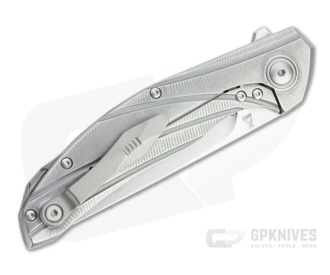 Handle: Milled and contoured titanium and Micarta handle slabs have comfortable contours and radiating milled grooves for traction and style. Gray titanium pivot collars and titanium back spacer complement the stonewashed finish while the steel lock face equipped integral frame lock offers easy operation and rock solid lockup. The partial back spacer has a signature Anso lanyard loop.