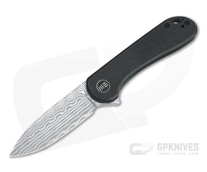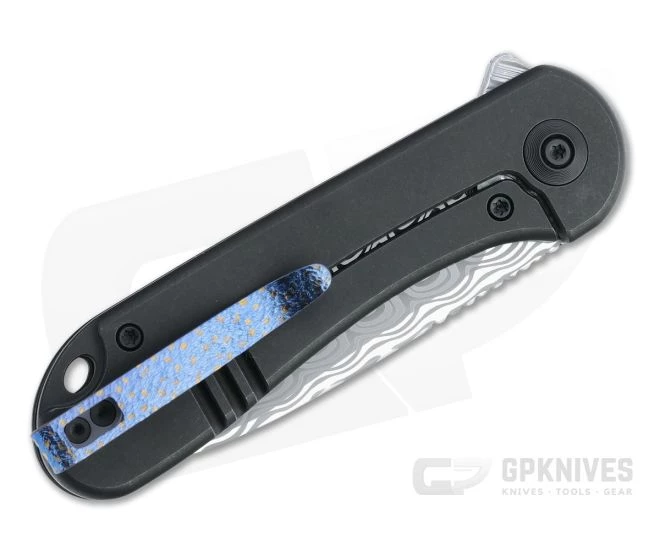 Moving to the WE Knife line, the popular daily carry CIVIVI Elementum gets a serious upgrade with full titanium frame lock construction and premium stainless steel blade. Start at the top or add to your collection, either way the frame lock Elementum is a great choice. This version comes with a Hakkapella pattern Damasteel blade and black stonewashed titanium handle.
