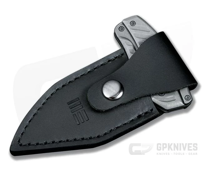 An innovative in-house design from WE Knives, the Typhoeus is an adjustable folding push dagger that provides the utility of an EDC fixed blade with the defensive potential of a classic push knife. Simply shift the single edge Tanto blade on the pivot to the configuration you need at the moment and secure it in your grip. This version comes with a gray stonewashed CPM-20CV blade and matching titanium handles and hardware.