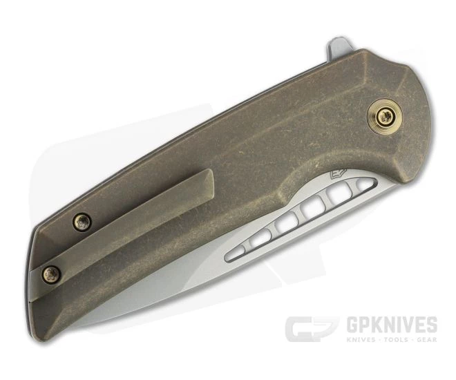 The Mini Malice is another collaboration between WE Knives and Ferrum Forge Knife Works, offering their custom design in a premium full production platform. A compact button lock flipper, the Mini Malice is a great compact daily carry companion when you need performance, style, and comfort. This version comes with a blasted CPM-20CV blade with stonewashed bronze titanium handle.