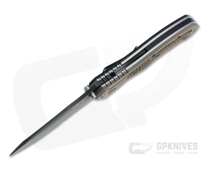 Handle: Two thick stainless-steel liners form the foundation of this tactical EDC. Sweeping, ergonomic lines pair with strategic jimping and textured G10 scales for a secure and comfortable grip in hand. The factory front scale (included) has been replaced by a contoured and milled brown, black, and tan G10 scale for enhanced comfort and traction. The steel liner lock is rock solid and secure with smooth, reliable operation.